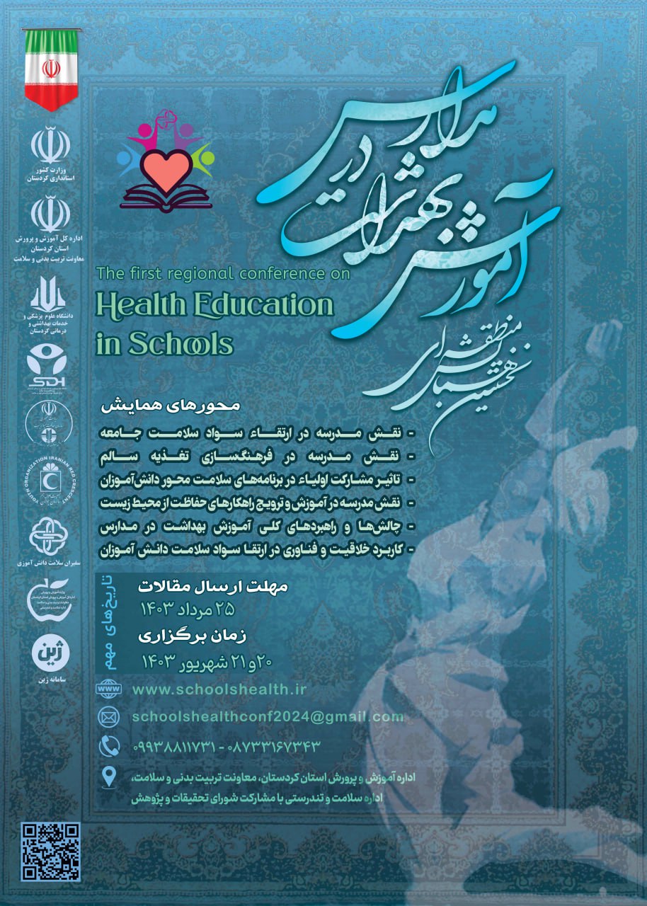 اداره آموزش و پرورش استان کردستان با همکاری چندین سازمان از جمله مرکز تحقیقات عوامل اجتماعی موثر بر سلامت دانشگاه نخستین همایش منطقه ای آموزش بهداشت در مدارس را در تاریخ 20 و 21 شهریور 1403 برگزار می نماید.