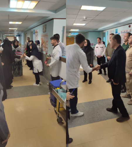 مراسم با حضور در بخشهای مختلف بیمارستان آغاز شد و با اهدای گل و شیرینی به پرستاران، فضای دلنشینی از قدردانی و احترام شکل گرفت. در ادامه، از دو پرستار جهادگر بیمارستان شفا بهصورت ویژه تجلیل شد و لوح تقدیر و هدایا به ایشان اهدا گردید.