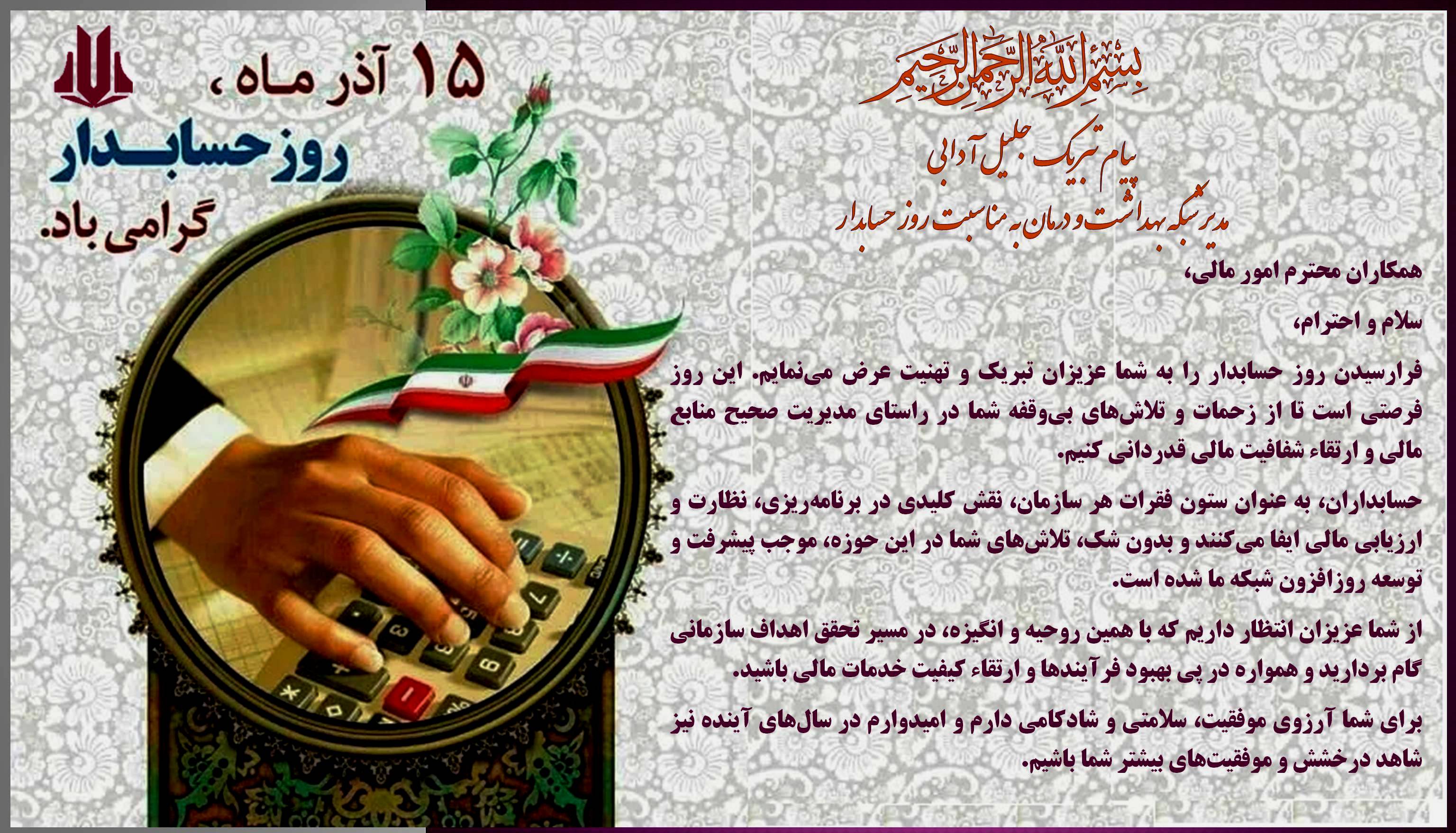 به مناسبت روز حسابدار جلیل آدابی مدیر شبکه بهداشت و درمان شهرستان سروآباد پیام تبریکی منتشر کردند