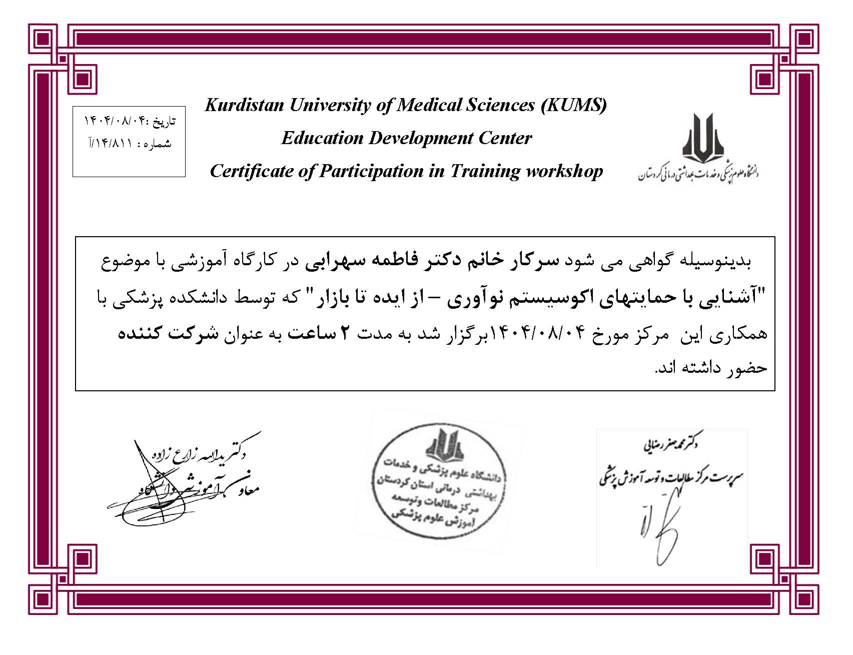 سرکار خانم دکتر فاطمه سهرابی
