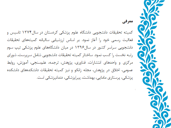 کمیته تحقیقات دانشجویی، دانشگاه علوم پزشکی کردستان، سنندج، ایران